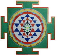 Sri Chakra (Yantra) by Subash Razdan (India) Sri Chakra represents all Divinities. Shri Chakra or Shri Yantra is known as the symbol of wealth & prosperity. It is also known as the yantra of the Cosmos. The worship of Shri yantra bestows peace, power, bliss and protection from evil. |