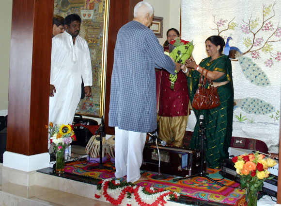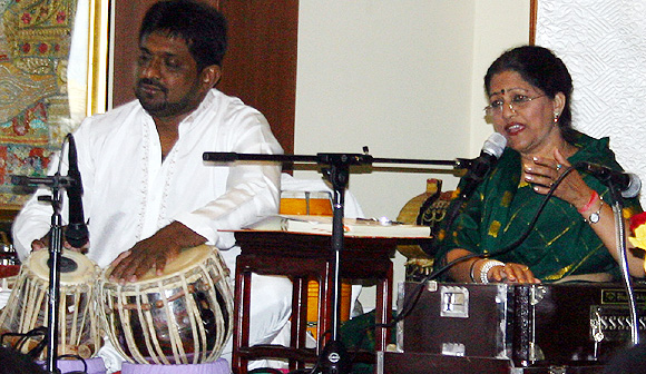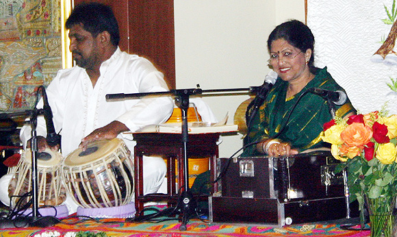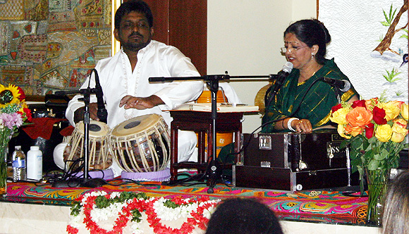 With her enchanting voice Kailashji started the evening with Ganesh bhajan followed by a collection of her new songs for the listening pleasure of the crowd; who could not get enough of her beautiful music. The atmosphere was warming up as Kailashji poured out her all time favorite melodies like Bal Maryo, Partho Gilas, Katyo Chuk Nund bane and even a few Hindi songs and Ghazals. The crowd went berserk as Kailashji sang songs on people’s requests; it was hard to bring the programe to an end, as the people could not get enough of her beautiful enchanting music. Finally the beautiful musical programe was brought to a close with a vote of thanks to Kailashji and other artists who accompanied her on musical instruments. Special vote of thanks also went out for the gracious hosts Dr. Chander Shaykher and Mrs. Gita Shaykher, who welcomed Kailashji and all the guests at their home with open hearts, Deepakji Ganju and Chandraji Ganju for organizing such a wonderful event and to all the volunteers without whom this enchanting musical evening would not have been such a success. All this was followed by a pot-luck dinner including mouth watering delicacies prepared by the ladies of the Biradiri. It was a beautiful, mesmerizing evening with magical amalgamation of musical notes and aromatic cuisine from the valley; which will linger in the hearts of all for many years to come. |