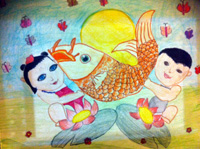 Great to see her paintings i m going frame that ganesh and krishna bhagwan photo. God bless both of your children. I loved it.