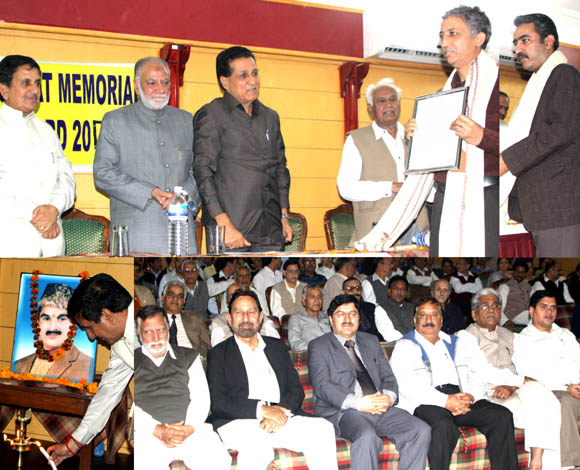 | Report & Images by Raman Raina A function attended by a galaxy of journalists and intelligentsia including from the Kashmiri Migrant Community was held here today to confer Prem Nath Bhat Memorial Journalists Awards, 2009. The programme was organized by Prem Nath Bhat Memorial Trust. Two prominent Journalists from Jammu, Avtar Bhat, working with Daily Excelsior and Zafar Chowdhary, Editor English Periodical Epilogue and Executive Editor Daily Early Times were the recipients of the award. R.S. Chib Minister for Medical Education, Technical Education, Youth Services and Sports who was the Chief Guest on the special occasion gave away the awards, amidst rendering of citations and presentation of shawls. Justice Sayed Bashir-ud-din was the Guest of honour, while Dr. Roop Lal Sharma an eminent Educationist and Social Activist presided over the function. Welcoming the guests of honour and an other distinguished invitees to the function. Senior Journalist Yash Bhasin, Trustee Prem Nath Bhat Memorial Trust and Convener of the Award Giving Committee stated that Prem Nath Bhat Memorial Amateur Journalists Award was instituted jointly by English Magazine Jammu Panorama, edited and published by him and Prem Nath Bhat Memorial Trust in 1990.Till 2004 giving away of awards to some distinguished non-professional journalists was an annual feature. About 100 eminent non-professional journalists have been conferred the awards during these 16 years. With the publication of Jammu Panorama seized in 2005, the awards could not be conferred. But the same has been revived this year with little deviation by selecting two professional journalists for the awards. Paying tributes to Late Prem Nath Bhat, a leading Advocate of Anantnag in Kashmir and an eminent non-professional journalist who pursued Journalism as a hobby, with a mission, Mr. Bhasin said that articles on socio-political subjects, mainly concerning J&K besides on spiritualism and religious philosophy of Hindus, Muslims and other faiths by Prem Nath Bhat were published in various newspapers and periodicals in the State and in the country. Right from the launch of Jammu Panorama Magazine, Prem Nath Bhat had been regularly contributing articles to the magazine till he attained martyrdom at the hands of religious fanatics, on 27th December 1989. Some of his articles forecasting the pending disaster and chaos in Kashmir proved prophetic. He was assassinated by the religious bigots as his write ups on communal harmony, peaceful co-existence and commitment to nationalism were unpalatable to the enemies of peace. He added that Prem Nath Bhat was highly respected, admired and held in high esteem not only by members of his own K.P. community but also by a large number of Muslims and members of other communities, who sought his advise and guidance on various matters. A renowned Scholar, Predhuman. K. Joseph Dhar threw light in detail on Prem Nath Bhat as an eminent journalist and humanitarian par excellence. |