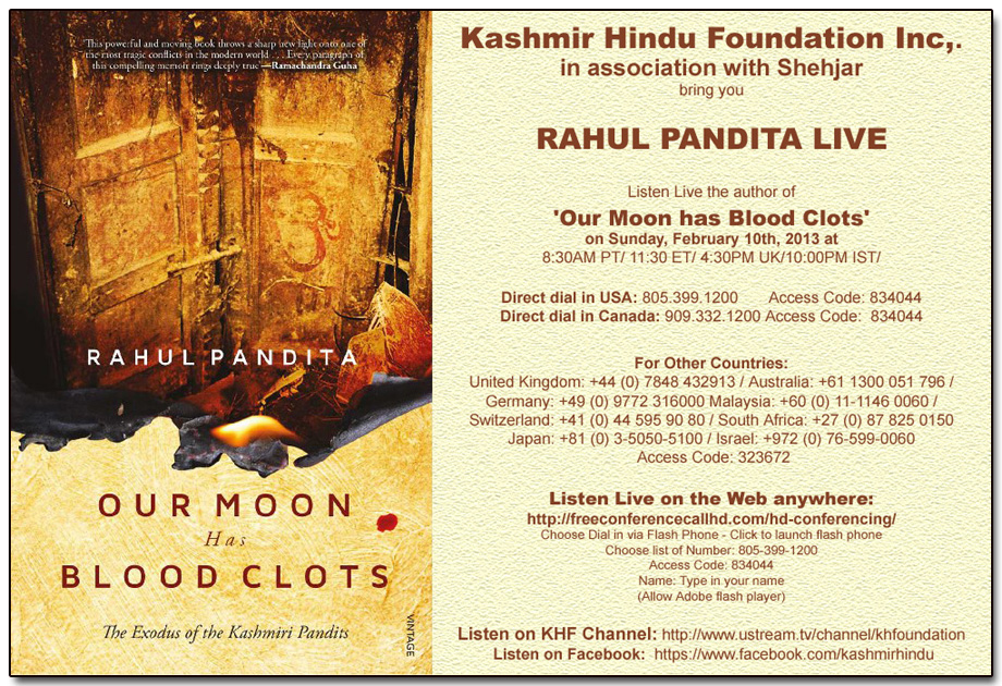| Global Teleconference - Kashmiri Hindus with Rahul Pandita New York, USA, February 10, 2013 |
