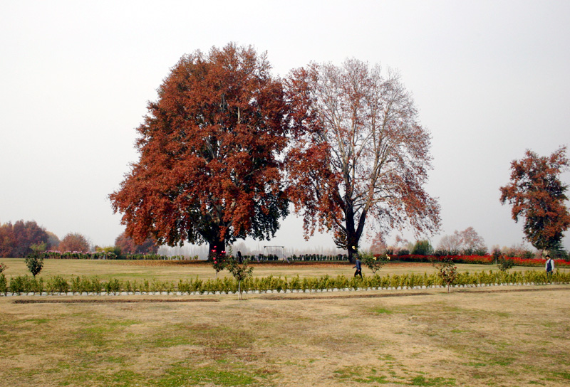 The foliage of Chinar gives soothing and coolest shade as compared to the other trees. Many saints, seers and hermits have meditated in the cavernous trunks of this tree. During Ganesh festival (Pann Festival), Kashmiri Pandits used to use the Chinar leaves as covering while baking ‘Roth Tsot’ so that it is well baked and without any burn-stain. Its grey-white bark which peels off in patches is used as sacred firewood for making ‘Roth Tsot’. Several Kashmiri words, phrases and proverbs express the characteristics of Chinar. These are ‘Boouin Shuhul (shade of Chinar); ‘Boouin Naar’ (fire of Chinar); ‘Boouin Gogur’ (hollow trunk of Chinar); ‘Boouin Bagh’ (grove or garden of Chinar); ‘Char Chinar’ (a place named because of the four Chinar trees located in Dal lake); ‘Boouin Muhul Tarun’ (impossible thing) and ‘Prayagech Boouin Na Thadan Na Badan’ (the Chinar of Prayag neither becomes tall nor big; it means a child who doesn’t develop). The mystic Chinar at Shadipur (the ‘Prayag’ of Kashmir) till date stands testimony to sacredness of Chinar.