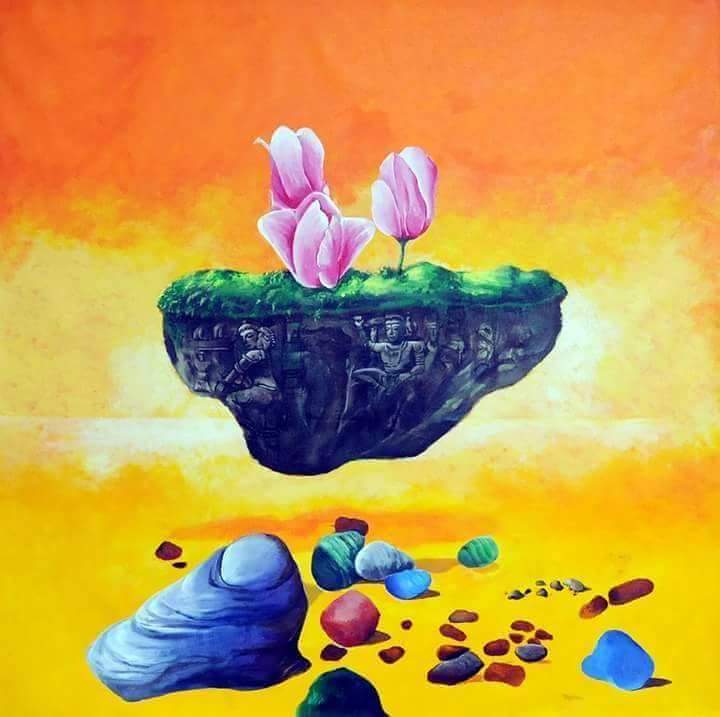 Sacred stone in my valley 4x4 ft acrylic on canvas