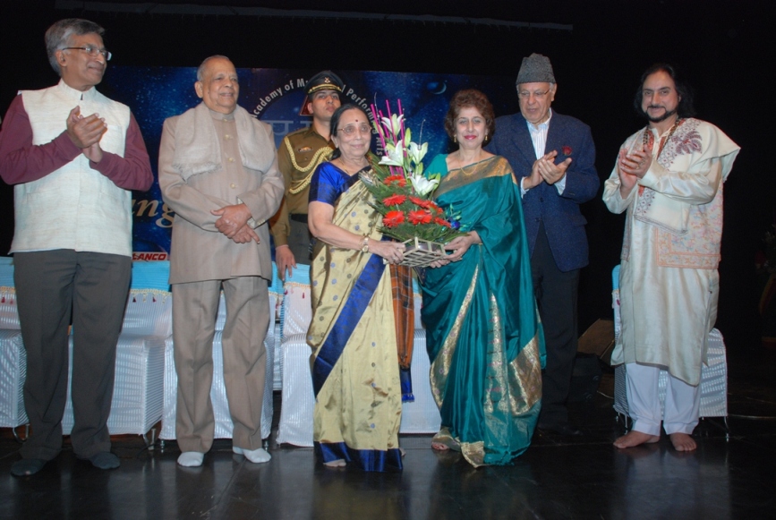 | H.E. the Governor of Assam Sh. Janaki Ballav Patnaik receiving the SaMaPa Kala Vardhan Samman 2012.