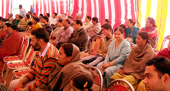 | In its drive towards Positive Health Initiatives, Shriya Bhatt Mission Hospital and Research Center took yet another historic step by organizing a public lecture on health in a non-camp colony of mixed ethnic groups residents - Kashmiri ‘migrants’ and Jammuites. The venue was the lawns of the temple complex of Adarsh Colony, Jammu, the speaker Dr. K L Chowdhury, the topic “How to Stay Healthy”. There was a large gathering, nearly 300 people - Kashmiri ‘migrants’ and Jammu citizens. A question- answer session followed the lecture which was addresses by the speaker and by Dr. Sanjay Raina. Shri Roopji Pandita, the manager of SBMH & RC detailed out the programmes and projects of the Center and exhorted the audience to make the best use of the services provided. The camp was held by the cooperation of residents of Aadershnagar under the leadership of Sh.Ashwani Raina. |