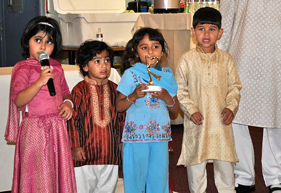 The event started with a colorful traditional Pooja by Pandit ji who was invited for the ceremony. Everyone participated and it was a joy to see the involvement of the children. During the pooja ceremony community volunteers served Kashmir Chai and snacks to members. The highlight of this year's event was that almost every one attended and colorful and different varieties of food was displayed. Local talent was at display with several songs and Cultural show. The kids also participated in various cultural activities and special prize's were given to each participant. Dr. Amrit Nehru was recognized for his community services and was presented with an award and a Kashmiri Shawl. The award was presented to him by Shri Rajiv Khoshoo. Everyone expressed full support and faith in the community activist role of Paviter Handoo and his leadership abilities to handle tough situations and take on the challenges. They also thanked him for his personal efforts to make this event a memorable one. |