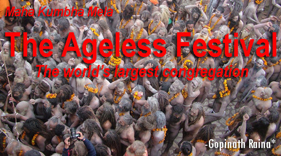 *A journalist by profession, a scholar by temperament and a writer by choice, Gopinath Raina was inclined to the study of religion from his very young age. It was Swami Vivekananda’s dynamic exposition of Hindu thought that fired his imagination while he was still at school, and by the time he entered college, he had been drawn to the writings of Gandhi, Aurobindo, Narayana Guru, Radhakrishnan and Bertrand Russel.After retiring from Indian Information Service (I.I.S.) in 1983 where he distinguished himself as an editor, correspondent, commentator and administrator in All India Radio, he edited, AICC Journal, Varnika, (Jan.'84-Dec.'90), Koshur Samachar (March'91-Oct '95, Sanatana Sandesh,(1997-2005) and KASHEER (2003-2004), He has been writing profusely on various aspects of Hindu thought. He enjoys writing, particularly on saints and sages, not only of Kashmir, but of the other parts of India as well. Presently he lives in Miami, and spends his time writing personal memoirs. Some images are courtsey kumbh2010, GOI web site |