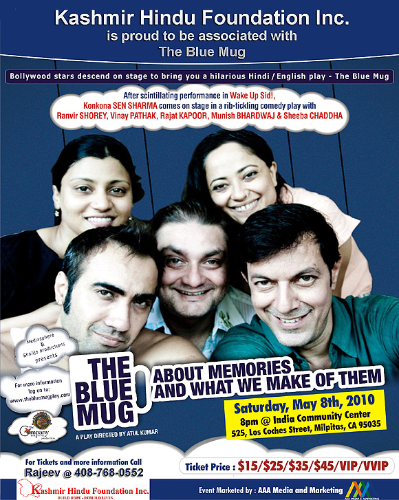 another take.” The chemistry between these actors lends fresh wit to the play, something which is rarely instituted in conventional theatre. The Blue Mug play premieres in Mumbai on February 20 followed by shows across India, Dubai, Muscat, Brazil, New York, Washington, Los Angeles, San Francisco, Atlanta, Chicago, Dallas, Houston, Austin and Raleigh until May, 2010. The Global Promoters for The Blue Mug play, Mediasphere & Shailja Productions are paving a new path in multicultural media, bringing a unique construct of entertainment. Shruti Tiwari, the brainchild of Mediasphere discloses, “I have always found the chemistry among all the actors on screen phenomenal, and we have received some really great feedback from our local promoters, which is clearly evidence of demand of such type of events in US and Gulf.” The Blue Mug play is only an initiatory step of Mediasphere’s expansion in these three countries.” | |||||||||||||||
