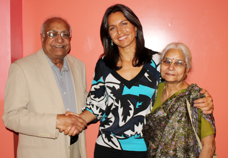 At the meet, the members of the Hindu community not only heard her but even asked questions on a few burning issues. Some of the initiatives she has supported recently include a "Signed bipartisan Congressional letter" aimed at making Religious Freedom a Top Priority in the U.S.-Pak relationship. This step addresses the concerns that the Hindu American Foundation had about the plight of Hindus in Pakistan. She supported the addition of the "anti-Hindu" category to the FBI's hate crimes data collection; she also joined the Tom Lantos Human Rights Commission (TLHRC) and is fighting for the rights of Hindus worldwide. What is more, Tulsi Gabbard has initiated a move for the release a stamp by the US Postal Service to mark the great festival of Diwali. Several speakers at the meet lauded Tusli's efforts to promote the cause of Hindu faith. While one referred to the wide-spread misunderstanding about the Hindu Faith among the lay Americans, the other sought her help to ensure the visit to US of Gujarat Chief Minister, Mr. Narendra Modi, as the entire Indian community in the States eagerly await the visit of this most popular leader in India. At 21, Tulsi was the youngest person in the country ever elected to a State legislature when she became a member of the Hawaii State legislature in 2002. She sacrificed her state House seat in 2004 to voluntarily serve with her fellow soldiers in Iraq as a captain in the U.S. Army Hawaii National Guard and served on 2 deployments to the Middle East. She is a decorated young veteran who is seen by many in Hawaii as a role model for young men and women alike and an inspiration for all because of her commitment to social service. In 2012, while serving as a Honolulu City Council member, Tulsi won the Democratic Primary Election after a come-from-behind victory over established candidates, and then went on to win the General Election in November. She is currently Vice-Chair of the Democratic National Committee. |
