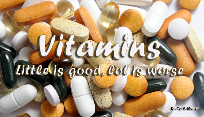 | Dr. Casimir Funk, a Polish biochemist in 1912, put forth the theory that foods contained essential chemical substances that were vital to life. He coined the term ' Vitamines' referring to them as ' Vital amines ', or nitrogen compounds. It later turned out that some of these substances were not amines and the 'e' was dropped, yielding to the much used "Vitamin " later. Till date, 13 vitamins essential to health have been discovered. Only very small amounts -- a few milligrams or even fraction of milligrams -- of vitamins are needed to maintain good health. Vitamins are classified according to how they are absorbed and stored in the body. Vitamins A, D, E, and K are soluble in water. The body can store fat-soluble vitamins in the liver and fatty tissue. Since most water-soluble vitamins are excreted in the urine, they need to be consumed more often. Provitamins are substances that the body can convert into vitamins. Beta carotene and a steroid in skin, get converted by sun's rays into vitamin D used by the body. Vitamins are synonymous with health: There is a false notion that, if a little is a bit good, a lot has to be better. Dr.Tim Byers, Dean at the Colorado School of Public Health, challenged this idea recently at the American Association for Cancer Research Meeting where he retorted: " We now have direct evidence that a lot is no better. Infact, a lot is worse and can create health problems." There is no doubt the body needs a minimum amount of vitamins to function normally. Deficiencies in Vit.-C can lead to scurvy, and inadequate Vit.-D can cause the body deformities of rickets in children. Most of the people who take vitamins don't have any such problem like pernicious anemia or hemorrhagic disease. In fact, most of them are completely healthy and take vitamins not to treat sickness, but to prevent it. Reviewing his work of 30 years, on vitamins and cancer at the AAFCR Meeting, Byers opined that vitamins actually can't prevent disease. The 1996 Physician's Health Study in Canada, he pointed out , found no evidence to show that beta-carotene (the dietary form of vit-A ) prevents cancer. In 2009, the Phsicians' Health Study II, found that vit.-C and vit.-E had no protective effect either. Study after study showed that vitamins C, D, and E did not lower the risk of cancer. Byers even produced worrying data which suggested that (excess) vitamins might actually increase people's cancer risk. Two other randomised trials found that high doses of beta-carotene increased the risk of lung cancer in smokers. Another trial that studied 35,000 men in Canada and US, found a link between high doses of Vit.-E and prostrate cancer in men. That position was later echoed by the US Preventive Sciences Task Force. Dr. Eliseo Guallar of Johns Hopkins University, believes most of the risk is due to the use of doses above and beyond what the body actually requires. Water-soluble vitamins, such as vitamin C and the B-Complex vitamins, will simply be filtered by the kidneys and passed in the urine, once the blood levels rise above a certain threashhold. Fat-soluble vitamins, such as vitamin A, D, E and K, may pose more of a problem, accumulating in the soft tissues of the body and potentiates causing toxicity at higher doses.