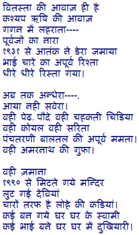 I like your poems. It is you who gave the name Vitasta to my elder siter. I know it well that you love Vitasta, and consider her the Divine Mother.You told me once, when I asked you to tell me about the birth of Vitasta.Here in Rajasthan, we also celebrate the Birth of Vitasta river.This unites us with Kashmir. Vibhasa Raina