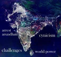 | Regardless, an Arundhati Roy and its ilk must not be condemned or, at the very least, neglected for two distinct reasons: (a) the issues she picks on at the breakfast table are critical issues that face a resurging Bharat and the substance of those issues must be paid immediate heed to without necessarily reacting to the motives behind it or the manner of expression; and (b) her denouncement of both the idea of Bharat and the guiding principle of democracy and her implicit support for nihilism must serve as an inspiration to Indians particularly the youth to ensure that it is only the very idea and ideals of Bharat that can remedy the systemic wrongs and State excesses within the nation. It must be known that she is not the only one rejecting the idea and ideal of Bharat. Several Indians and sections of the international community, whether unknowingly or otherwise, share this abnegation in different intensities and different ways. We must work towards proving right the basic truth that only the boon of democracy and liberty can truly engulf its bane.That neither destruction of the idea of India nor violent extremism is needed for a systematic reform in our systems and governance, and that only a true evolutionary process within the contours of our Constitution and guiding principles of our Founding Fathers can provide us the country we aspire for. To her credit, despite the fact that she is, for example, “on the side of” Maoists wishing to overthrow the Indian State or separatists in Kashmir wanting azadi, she did question, though only recently, the merits of the alternative by asking her ‘comrades’ in both struggles whether they will truly uphold the basic humanitarian values should they get what they want. Will separatists who happen to rule an azad Kashmir in the event of secession truly uphold equal rights of minorities; will they recall Kashmiri pandits back into their land and provide safety? If the obvious answer seems to us countrymen to be in the negative, we have an obligation to be active stakeholders in bridging the lacunae between the ideals of Bharat and its implementation to prove, not by force but by adherence to highest standards of humanity that Bharat has been the epitome of, that hope lies in Bharat only. No system other than a vibrant democracy gives the entire nation a right to insist that within the framework of our Guiding Document. It is not enough to stop at the point of believing, however correctly, that the alternatives likely to be offered by Maoists or separatists of Kashmir will kill liberties and result in bloodshed. In fact, that belief should not even be predominant. The tragic consequences of an alternative must not be the preeminent basis of implicitly asserting the usefulness of the primary option. We must instead concentrate on actively shaping the Bharat we want, on improving her wheels of democracy, the Bharat that shall be the best hope for those who today are Maoists and separatists as well as for us. Bharat is the only large democracy that also has a communist party not too long ago, a part of the Executive in mainstream politics. Her eligibility and ability to have the highest standards of democracy and truly uphold basic liberties is, indeed, indisputable.