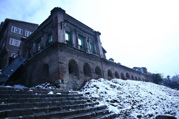 | And yet, overtly or through camouflage beneath other concerns, Munshi returns to the key crises of displacement, disorientation, and the loss of shared assumptions of belonging. While he may have perfected the art of masking melancholia with wry humour and softened the edge of self-inquiry with self-irony, the artist remains unremittingly aware that his present is an uncertain transition between a lost homeland and a future mined with shocks and bleak epiphanies. The interplay between the muted tonality of anguish and its opposite, the mandate of attempted detachment, is strongest in the photographs of Kashmir that Munshi has taken over several winters. The hand of snow is heavy on buildings, people, time, and the hope of movement. Our eyes settle on bridges that have almost vanished beneath snow and fog; on roofs that shoulder their burden of whiteness, and also of knowledge; on piles of snow that threaten to reduce steps, arches and walls into mere marginalia before the grander, unforgiving script of the natural cycles. The magic of the word ‘sheen’ comes back to haunt the mind: it is the Kashmiri for snow, neither image nor word to be experienced in the plains or the peninsular reaches of India. |