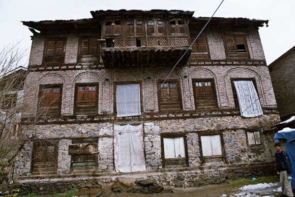 | His periodic visits to Kashmir are strange acts of half-return: he asks himself whether he is an émigré, a returning native, or a visitor from another planet. The present suite of photographs expresses his attempt to deal with the profoundly mixed feelings attendant upon these visits to a city that used to be home, a landscape that used to be homeland. It is an accounting for what is lost and cannot be redeemed; for Munshi knows how completely Kashmir has changed around these houses that are slowly falling into disrepair, ruin or partial reuse. A generation of Kashmiri Muslims has grown up without ever knowing what a Pandit looks like, or what it means to live in a multi-religious society. |