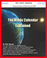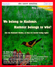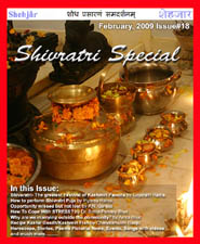 | Dear Shehjar readers, When we started our 1st issue in August, 2007, about 2.5 years ago, it was only a dream that we would be coming out with issues regularly month after month with content which would relate to such diverse interests and profiles. Fulfilling your knowledge and informational needs on Kashmir related topics as well as providing you news, views, quality analysis and meaningful entertainment has since been the purpose of our efforts. We wish to thank you, our readers and writers for bringing us this far, and making it possible for us to keep serving an ever growing readership. Without their untiring efforts, it would not be possible for us to bring issues at regular intervals. A special mention should be made of our writers and volunteers who have supported us and submitted articles to us at regular intervals. Acharya Surinder Gautama, Shri Gopinath Raina, Dr. Chamanlal Raina, Dr. K.L. Chowdhury, Dr. Satish Ganjoo, Shri P.N. Ganjoo, Shri Arun Koul, Shrimati Chandramukhi Ganju, Shrimati Jaya Sibu Raina, Shri Jawaharlal Bhat, Shri B.L. Dhar, Shrimati Bhumika Raina, Shri Chander M. Bhat, Dr. Anu Munshi Khandhar, Raman Raina, Arman Koul. Shri KanyaLal Raina, Miss Arti Nehru , Laxmanan Premjith, Gayatri Ganapathy and many others. Please see above links to the past 12 issues of Shehjar in 2009. Wishing you a very happy and prosperous new year, Deepak Ganju |